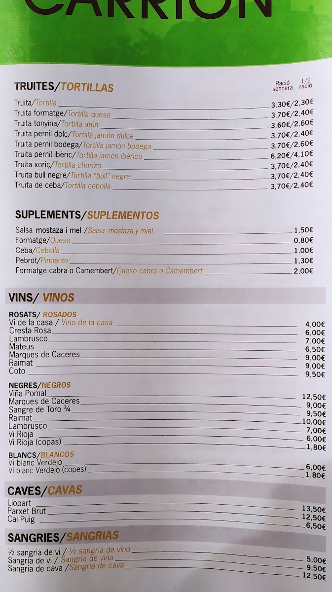 Welcome to Bar Carrión, a delightful gem situated in Tordera, Barcelona. This restaurant-bar is perfect for casual dining, whether you're looking to grab a drink or a hearty meal. Located at Carrer Camí Ral, 191, Bar Carrión stands out for its well-prepared bocadillos, featuring fresh, quality bread that elevates each bite.